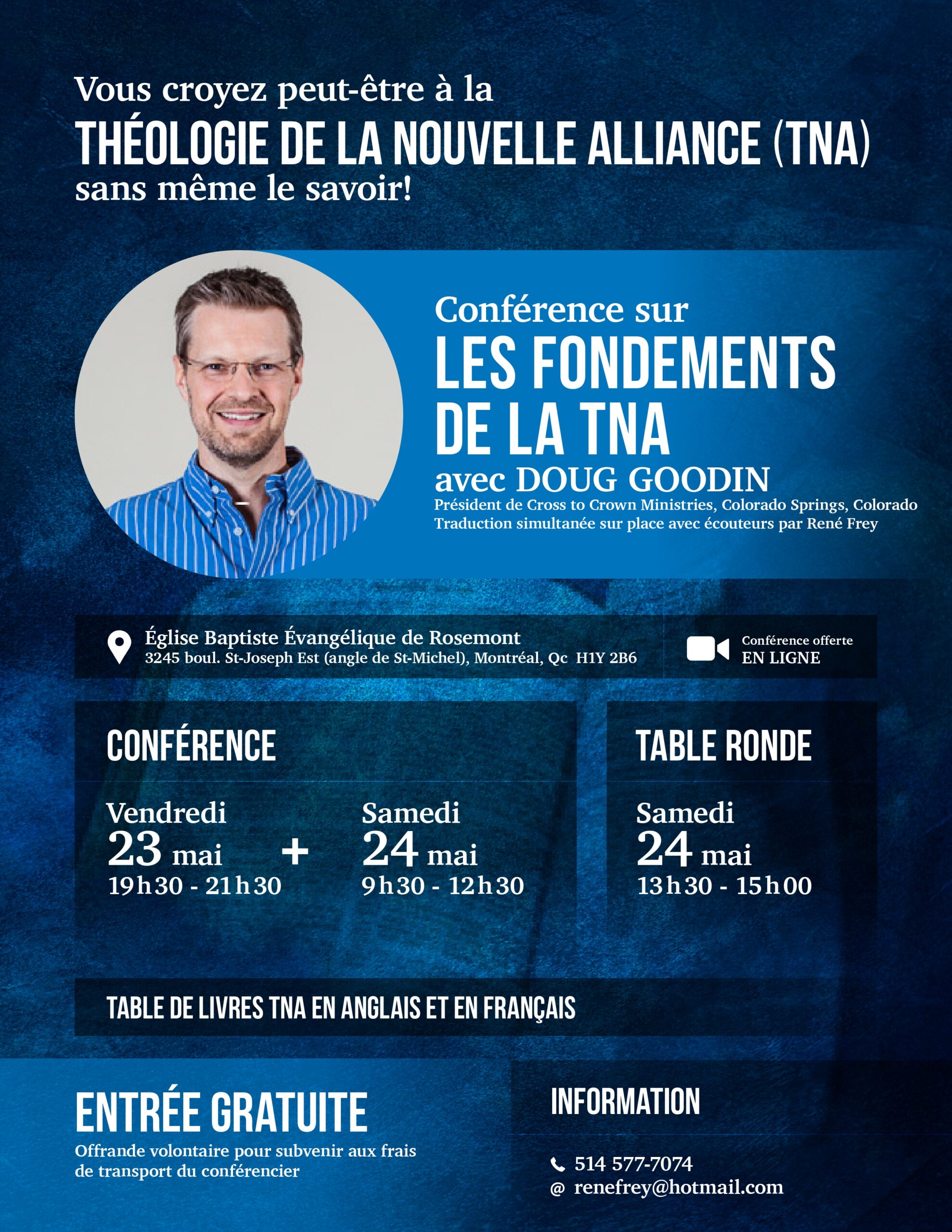 En 2021, il a démissionné du pastorat et s’est lancé dans un ministère d’enseignement quotidien en direct sur YouTube, X et Facebook. Doug et sa femme, Krista, ont la joie d’avoir trois enfants, dont deux sont mariés, et une petite-fille. Doug est un bon communicateur et un enseignant efficace de la théologie de la nouvelle alliance.